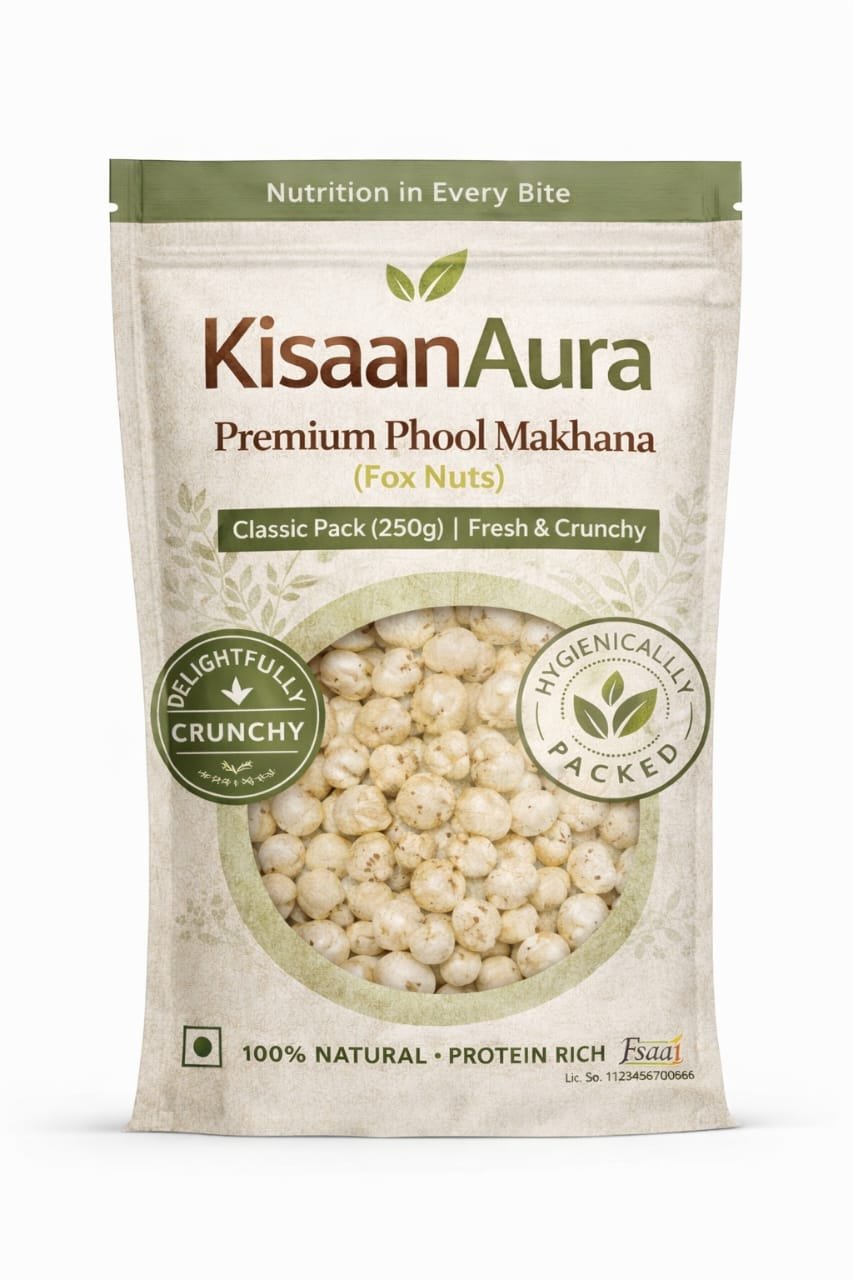 KisaanAura Premium Phool Makhana (Fox Nuts) Classic Pack (250g) | Fresh & Crunchy